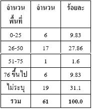 สำรวจโดยใช้แบบสอบถามจากครัวเรือนทั้งหมด 61 ครัวเรือนคิดเป็น 60 เปอร์เซนต์ของครัวเรือน