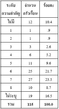 สำรวจโดยใช้แบบสอบถามจากครัวเรือนทั้งหมด 115 ครัวเรือนคิดเป็น 60 เปอร์เซนต์ของ